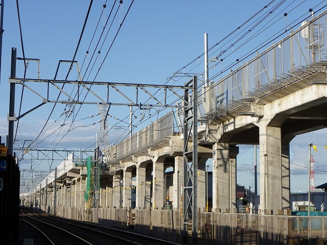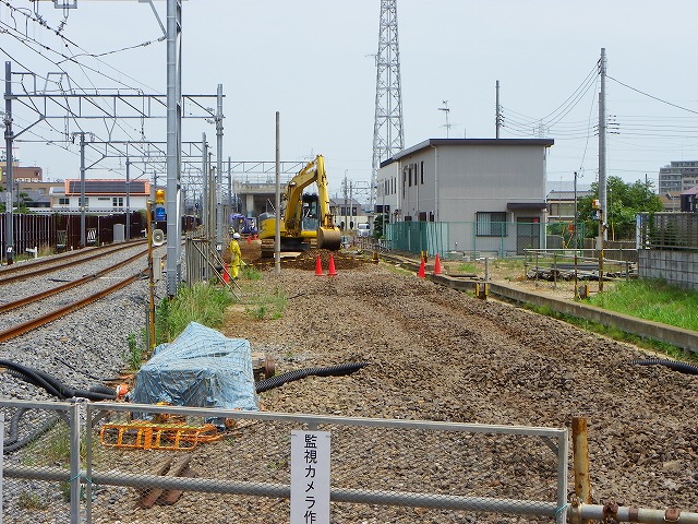 手前が初富方面、奥が新鎌ヶ谷方面である。仮線への移行に支障するのか渡り線は撤去された。