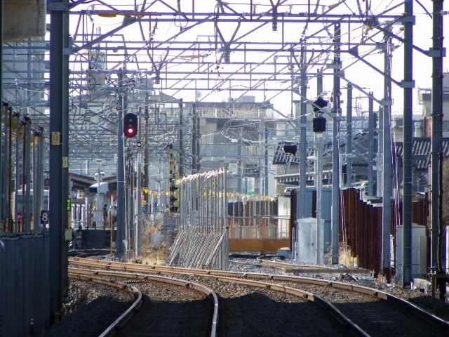 手前が新鎌ヶ谷方面、奥が初富方面である。踏切の位置がたびたび変更されている。