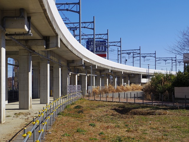 手前が新鎌ヶ谷方面、奥が初富方面である。車内に差し込む日差しが反対側になるくらいの大カーブ区間である。そのカーブの内側に仮線が敷設されている。なお一時期、この地点の踏切が閉鎖された。