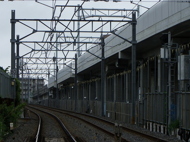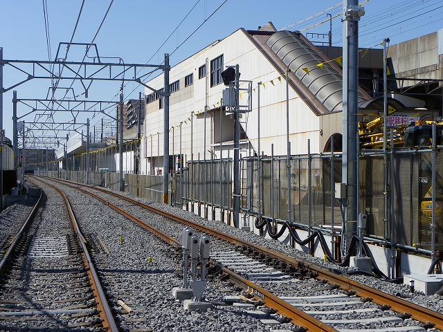 手前が北初富方面、奥がくぬぎ山方面である。立体交差事業により、北初富駅は手前道路反対側に移転した。