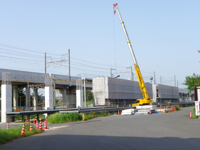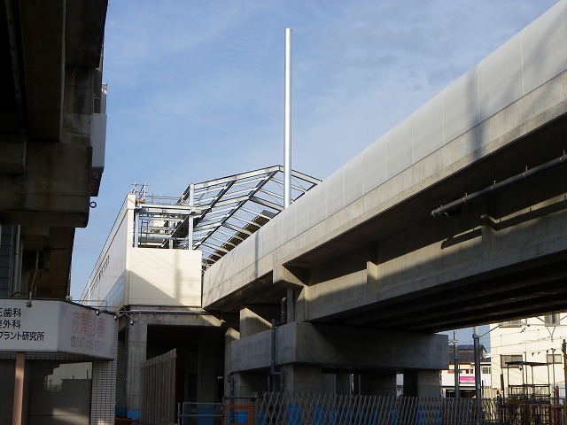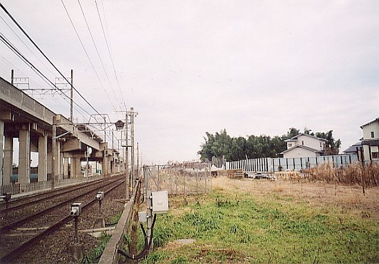 手前がくぬぎ山方面、奥が北初富駅である。周辺道路は道幅が狭く、交通量が多い。