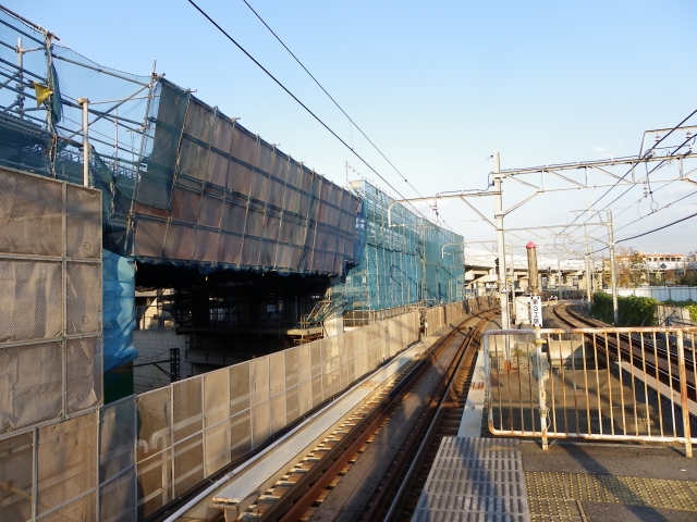 手前が新鎌ヶ谷駅、奥が初富方面である。線路右側にイオン鎌ヶ谷ショッピングセンターが建設された。